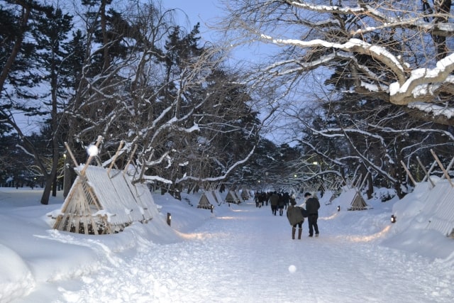 昼間は真っ白な雪景色、夜になるとそこに柔らかな灯りがともり、まるで別世界へ足を踏み入れたような気分になります。