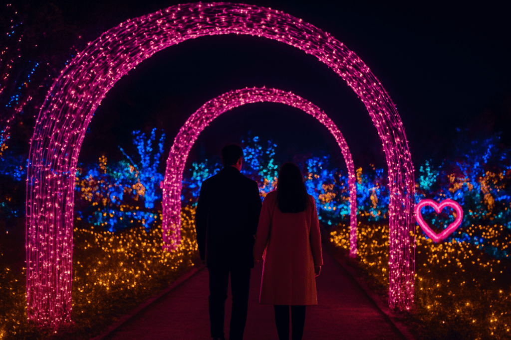 光のトンネルをくぐるたびに、まるで物語の中を歩いているような気分に。
