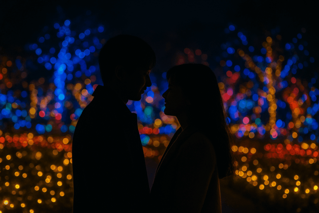 寒い冬の夜、手をつなぎながら見上げる無数の光。